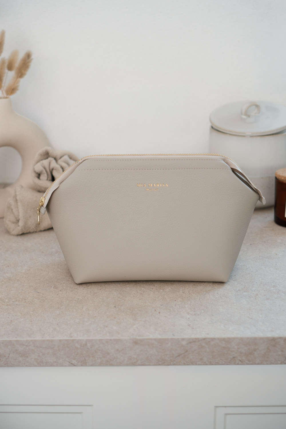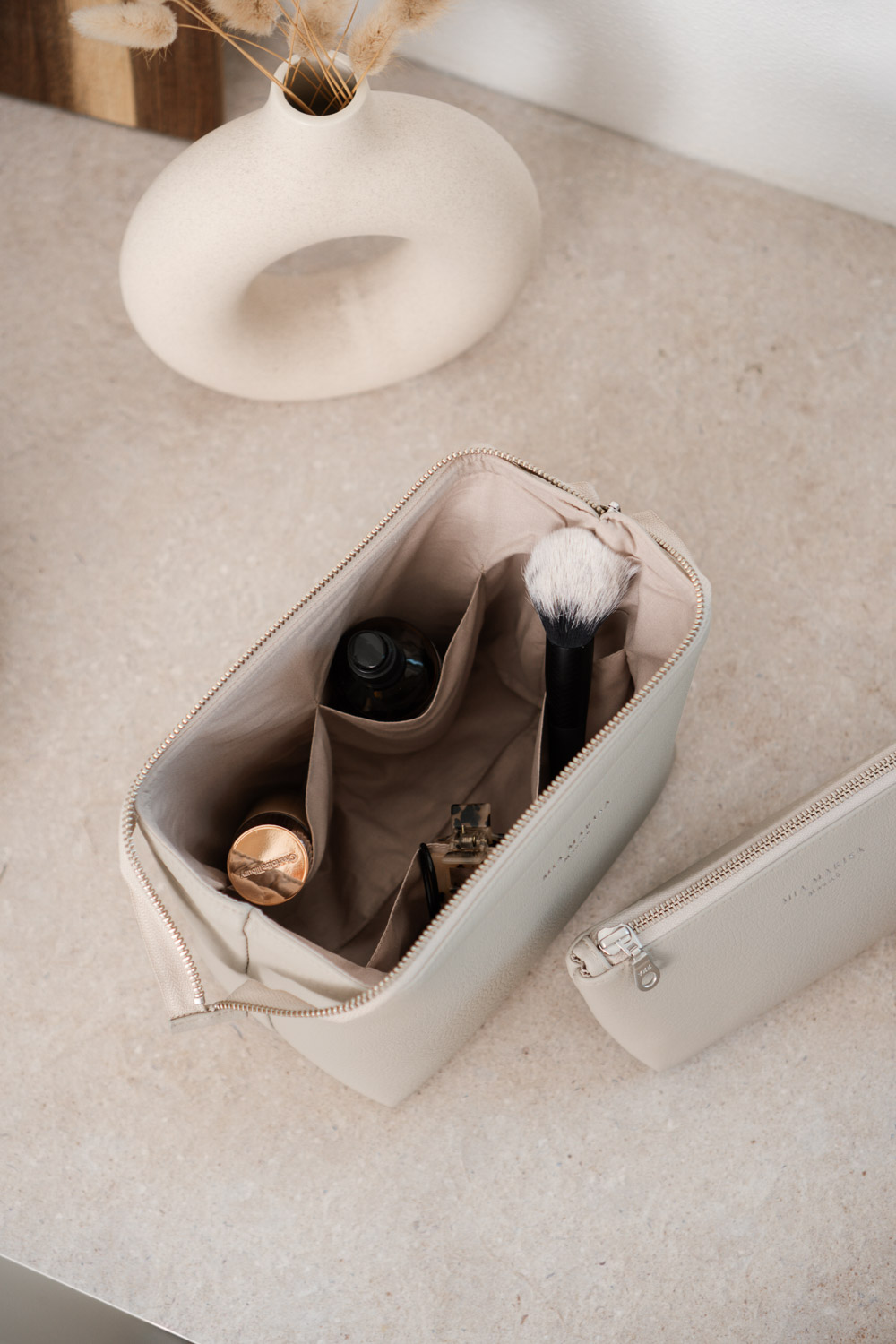 Als praktische Ergänzung zu dieser Kosmetiktaschegröße dient das kleine Schminktäschchen oder die umfangreiche Kulturtasche „Large“.