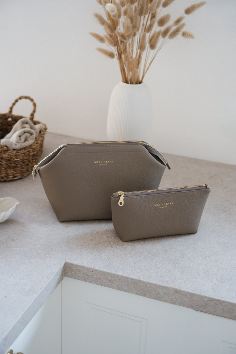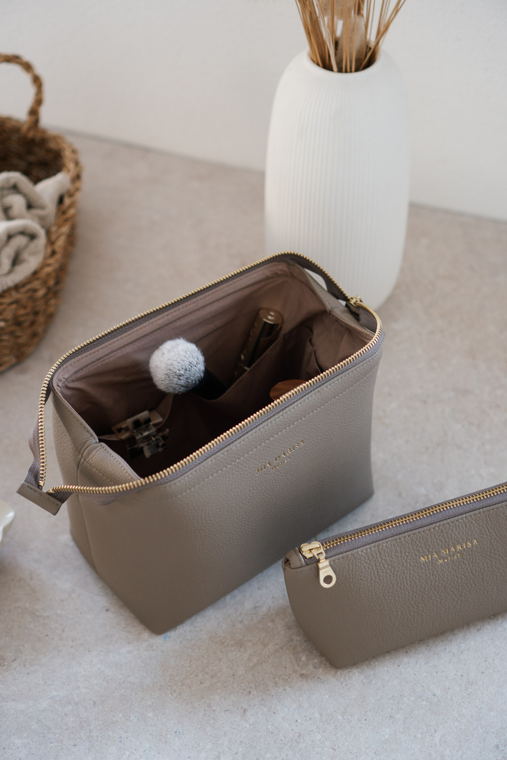 Als praktische Ergänzung zu dieser Kosmetiktaschegröße dient das kleine Schminktäschchen oder die umfangreiche Kulturtasche „Large“.