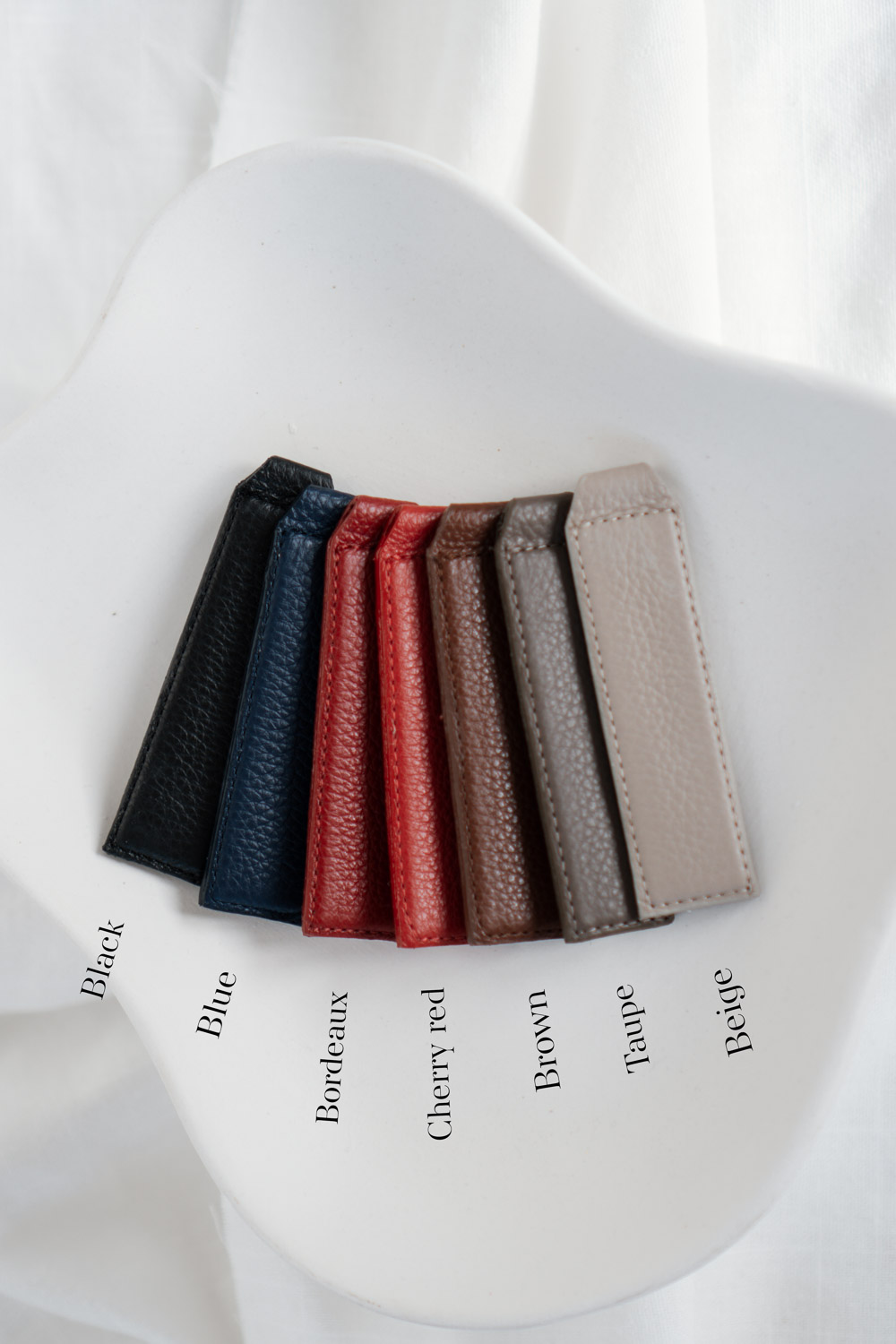 Unsere Schlüsselanhänger sind nicht nur funktionaal, sondern auch ein stilvolles Accessoire für jeden Tag. Sie sind in sechs wunderschönen Farben erhältlich: Blau, Beige, Schwarz, Taupe, Bordeauxrot und Kirschrot – jede Farbe einzigartig und mit besonderer Ausstrahlung.